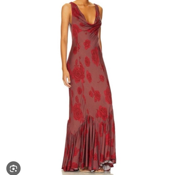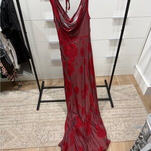 Free People Deep Red Floral Backless Dress