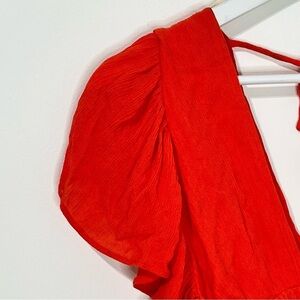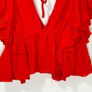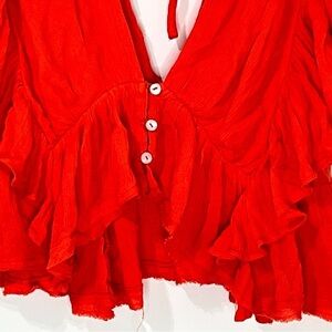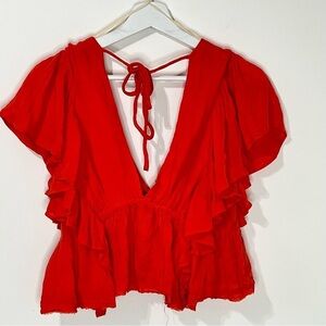 Free People Deep V Neck Ruffled Crop Orange Top Blouse Size XS