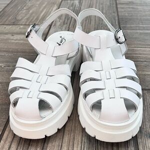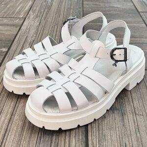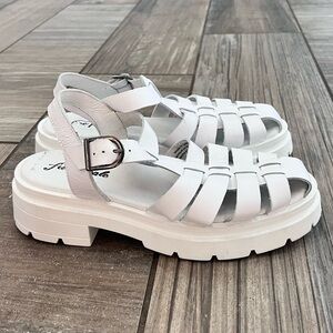 Free People Delaney Fisherman Platforms size Women’s 9.5 (39.5). These are new no tags. Store model and May show signs of being tried on. White color. Step out in these so cool, retro-inspired sandals featured in a woven-strapped fisherman style with a chunky platform sole.