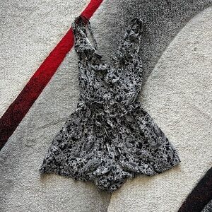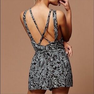 Free People Delphonic Black Paisley Waist Tie Romper