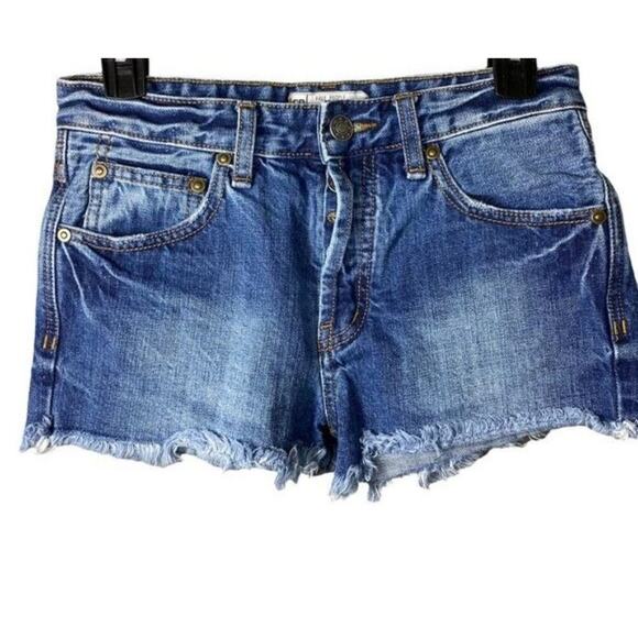 Free People Denim 5 Button Fly High Waist Jean Raw Hem Cutoff Shorts Size 24