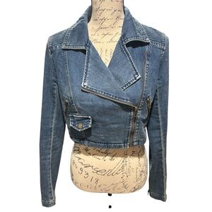 Free People Denim Cropped Moto Jacket Women’s Size Small