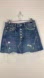 We The Free Denim skirt with distressing and asymmetrical stitching. Button fly, 5 pocket style, raw hem.