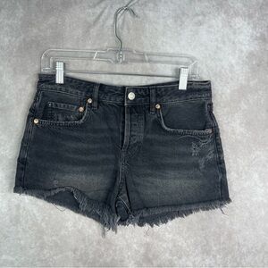 Free People Denim Distressed Cut Off Button-Fly Shorts In Black Women's Size 26