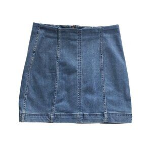 Free People Denim Flat Front Straight Pencil Stretch Mini Skirt, Size 8 #324