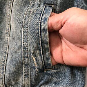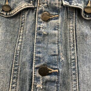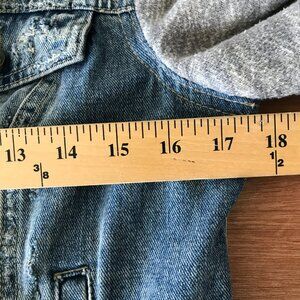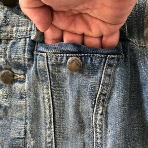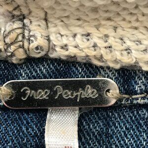 Free People Denim Jacket Women S Blue Hooded Distressed Button Up Long Sleeve
