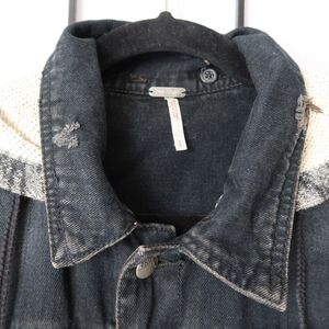 Free People Denim Jacket Womens S Jean Trucker Sweater Hoodie Distressed Crop