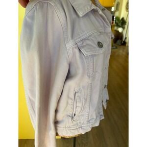 Keywords: denim jacket, trucker jacket, Free People, lilac, purple, light wash, jean jacket, casual jacket, women's jacket, spring jacket, fall jacket, small, S