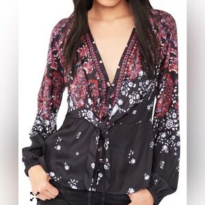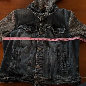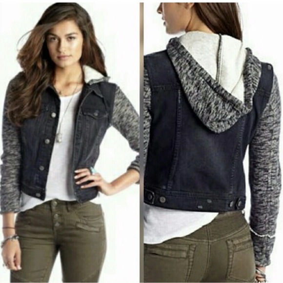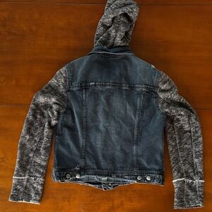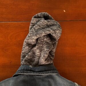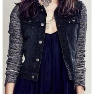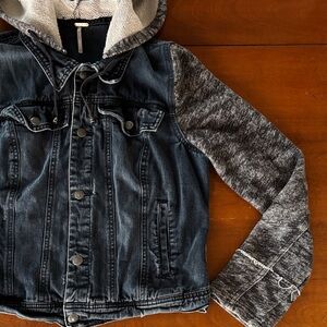 Free People Denim Jacket with Black and Gray Accents & Removable Hood. L