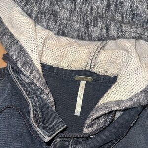 Free People Denim Jacket with Gray Sleeves and Hood