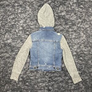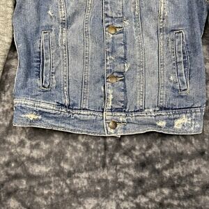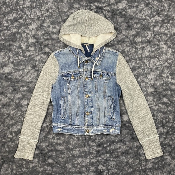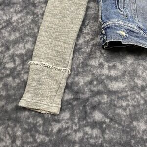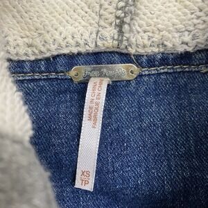 Free People Denim Jean Jacket Womens Size XS Gray Knit Hoodie Collared Button