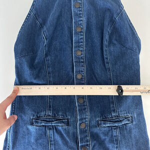 Free People Denim Jumpsuit 8 Blue Flared Halter One Piece Low Back 70s Retro