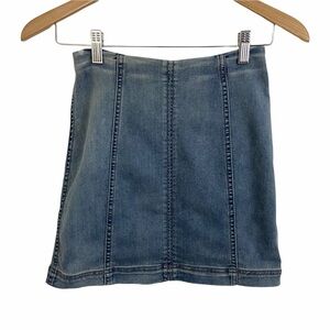 Free People Denim Modern Femme Skirt Light Blue Mini Stretch Sz 2