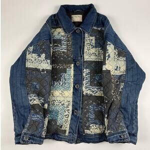 Free People Denim Patchwork Quilted Lined Jacket Womens Button Up Size Large