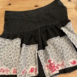 Free People Denim Raw Hem Paisley Floral Patchwork high waist mini skirt Boho 4