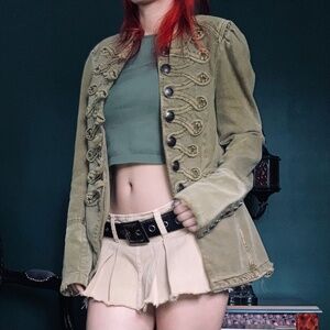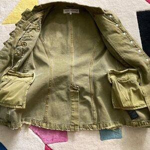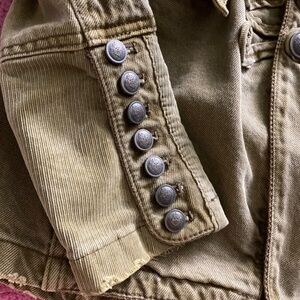 Free People Denim Seamed and Structured Military Jacket Buttons Olive Green XS