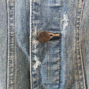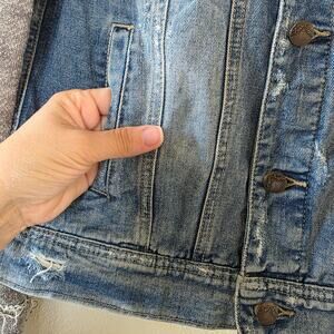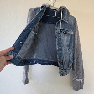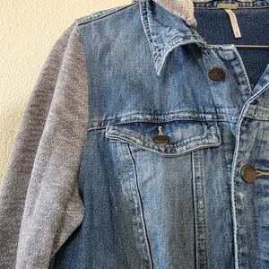 Free People Denim Sweater Jacket Colorblock Women Size M Blue Gray Raw Edge