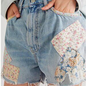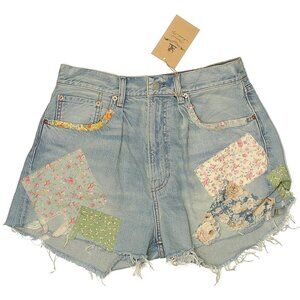 Free People Denimist Brooke Shorts in Patchwork Denim 27 NWT