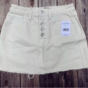 Free People Destroyed Denim Mini Skirt Button Fly Worn White 26 NEW. 81