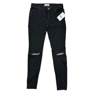 Free People Destroyed Stretch Black Skinny Jeans Size 24 NWT $78