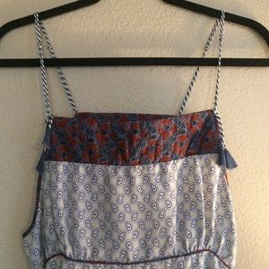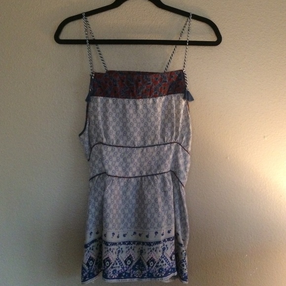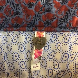 One of a kind Free People Tank Top. Size medium with a zipper on the side and a tie on the back which could be used to make the shirt tighter. Very detailed top with red blue and pink colors woven in it. Never worn.