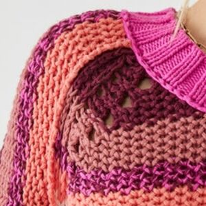 Free People Devon Open Knit Long Sleeve Chunky Oversized Sweater SMALL Fuchsia