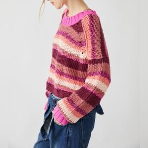 Free People Devon Open Knit Long Sleeve Chunky Oversized Sweater SMALL FUCHSIA