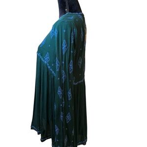 Free People | Diamond Teal and Blue Embroidered Tunic | Sz XS