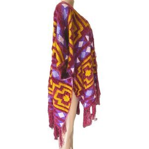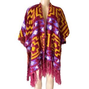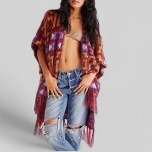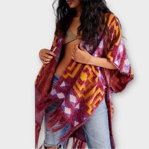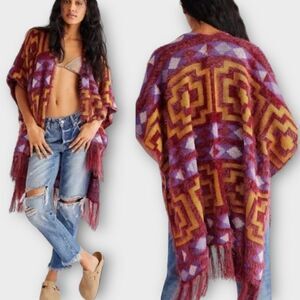 Free People Diamondback Cozy Kimono Poncho Soft Southwest Boho Purple Yellow OS