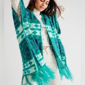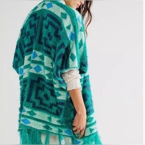 Free People Diamondback Cozy Sweater Kimono Poncho Emerald Green Aztec