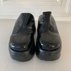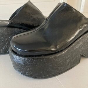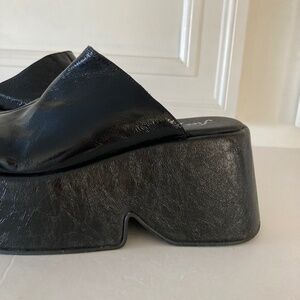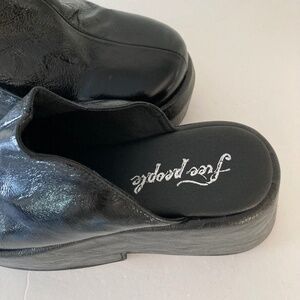 Free People Disco Dawn Platform Black Patent Leather Mules Sz 38