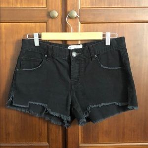 FP does not sell these shorts anymore so finding the information was a bit challenging. The tag has the number: 61855-16515125. They’re a cutoff denim short with distressing in a black wash and button fly. 2.5 inch inseam and 8.5 inch rise - size 26