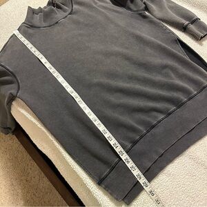 Free People Distressed Charcoal Gray Black Mock Neck Sweatshirt Tunic Side Slit