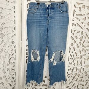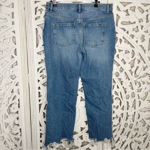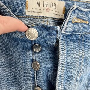 Free People Distressed Cropped Straight Leg Jeans in excellent pre-owned condition. Intentionally distressed, raw hem, button fly. 100% cotton so not stretchy.
