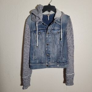 Free People | Distressed Denim Jacket S Grunge Hooded Streetwear Skater Hybrid