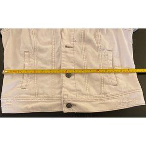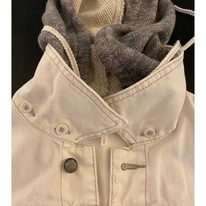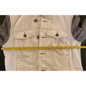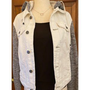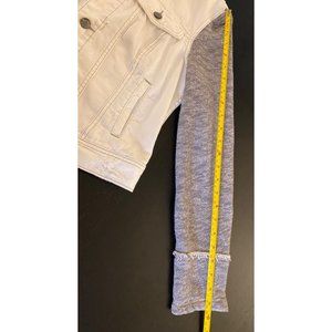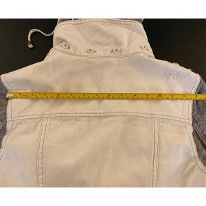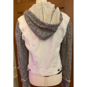 Free People Distressed Denim Jacket Women Small French Terry Removeable Hoodie