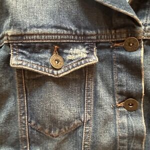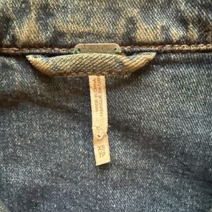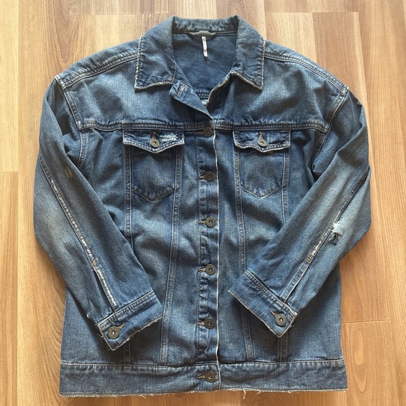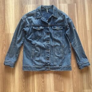 Free People Distressed Denim Jean Jacket Oversized XS (Medium) Dark Wash Trucker