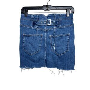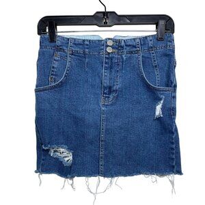 Free People Distressed Denim Mini Skirt Blue Ripped Frayed Hem Size 4