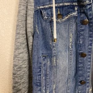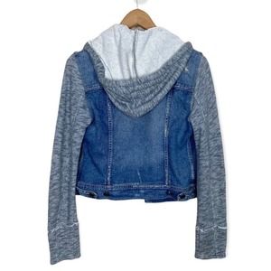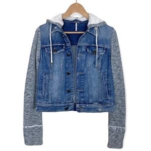 Free People Distressed Jean Jacket Womens Small Blue Gray Terry Hood Arms
