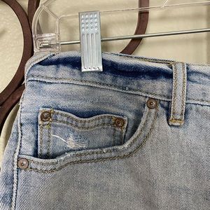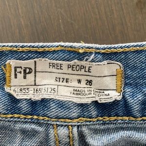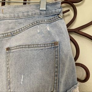 Distressed Jean shorts from Free People with crochet lace on the hemline.