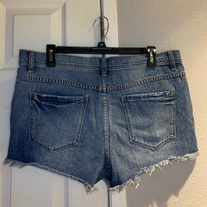 Stylish Free People jean shorts. Distressed design with frayed hems. Perfect for casual wear.
