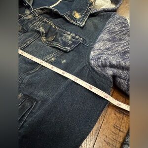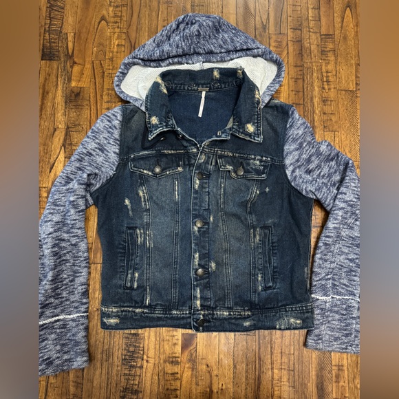 Free People Distressed Knit Hooded Denim Jacket Size Medium