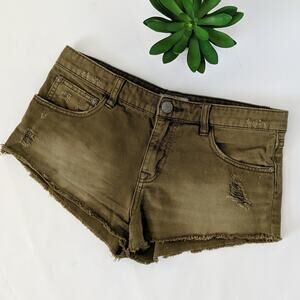 Free People Distressed Raw Cut Off Shorts Olive 26
