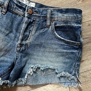 Free People Distressed Raw Hem Jean Shorts with Button Fly