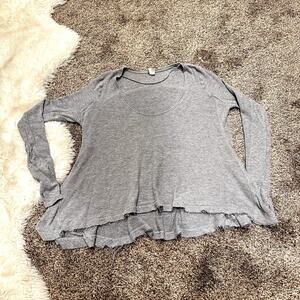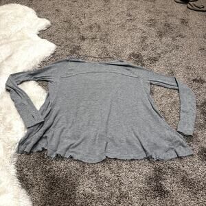 Free People Distressed Raw Hem Thermal Long Sleeve With Finger Holes Size XS