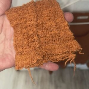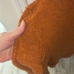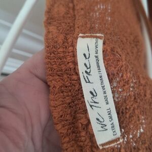 Questions? Leave a comment below!Free People Ocean Air Hacci Top rust burnt orange or pumpkin EUC $68..very frayed made that way see photos extra small.XS