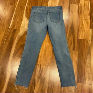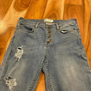 Free People distressed jeans. Pre-distressed but otherwise in excellent used condition. Size 29. Medium-wash with cute button detail on the front.