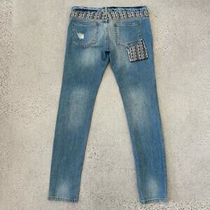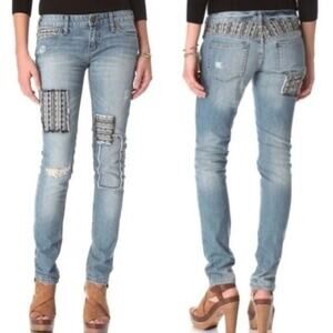 Free People Distressed Skinny Jeans with Baja / Aztec Patches