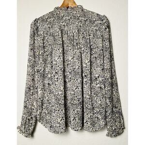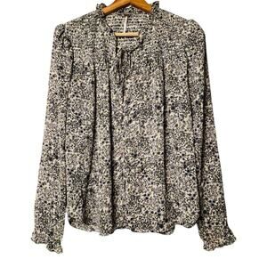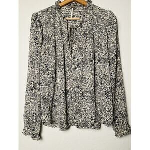 Free People Ditsy Floral Smocked Blouse Sz S Ruffle Tie Neck Boho Office Chic