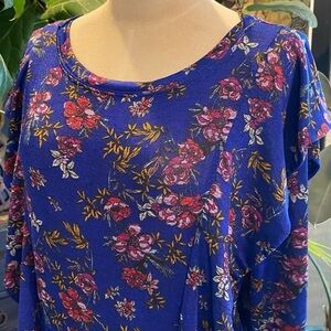 Free People Dock Street Knit Blouse. Shimmer to fabric. Floral. 80’s retro vibe. Stretchy.